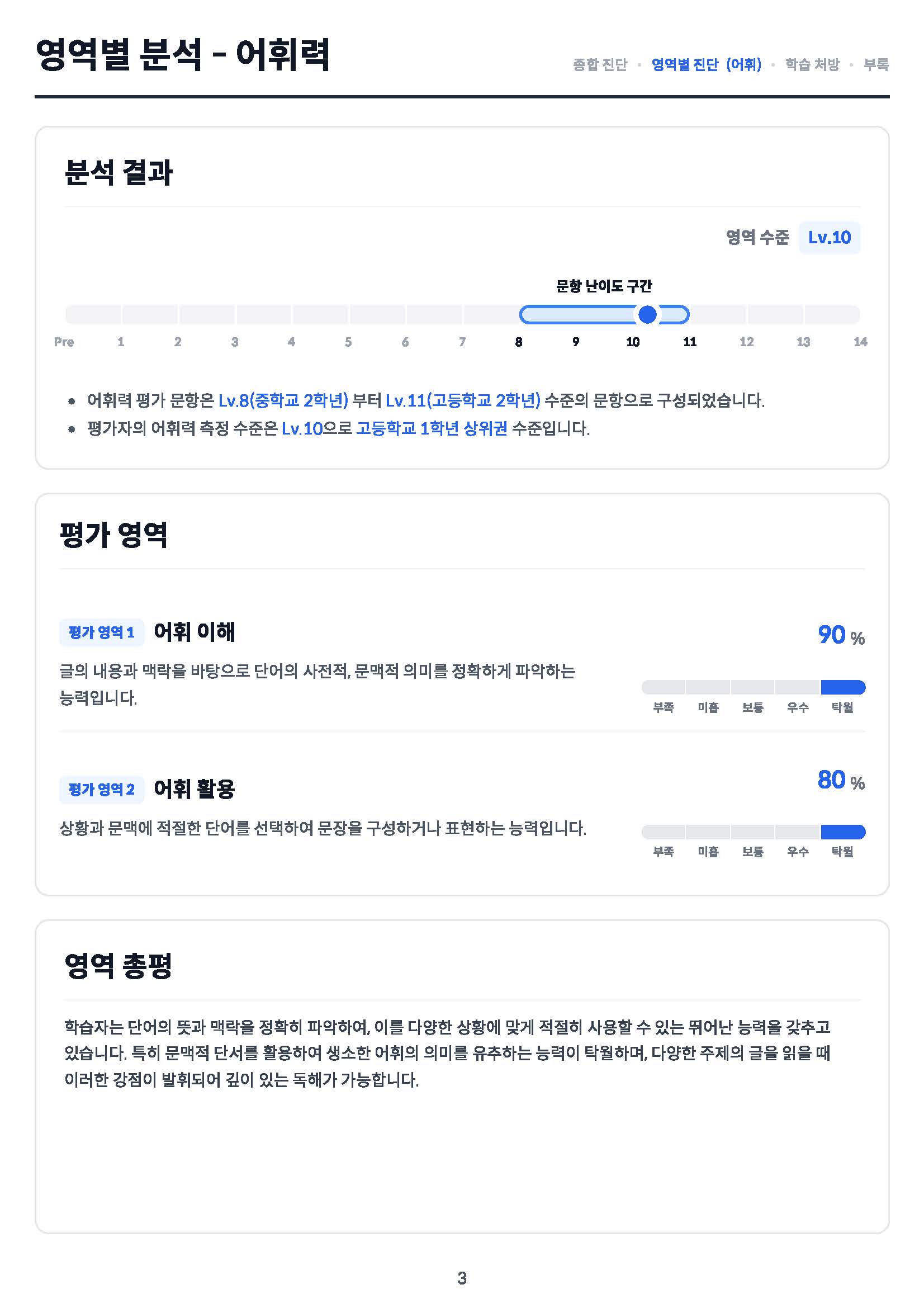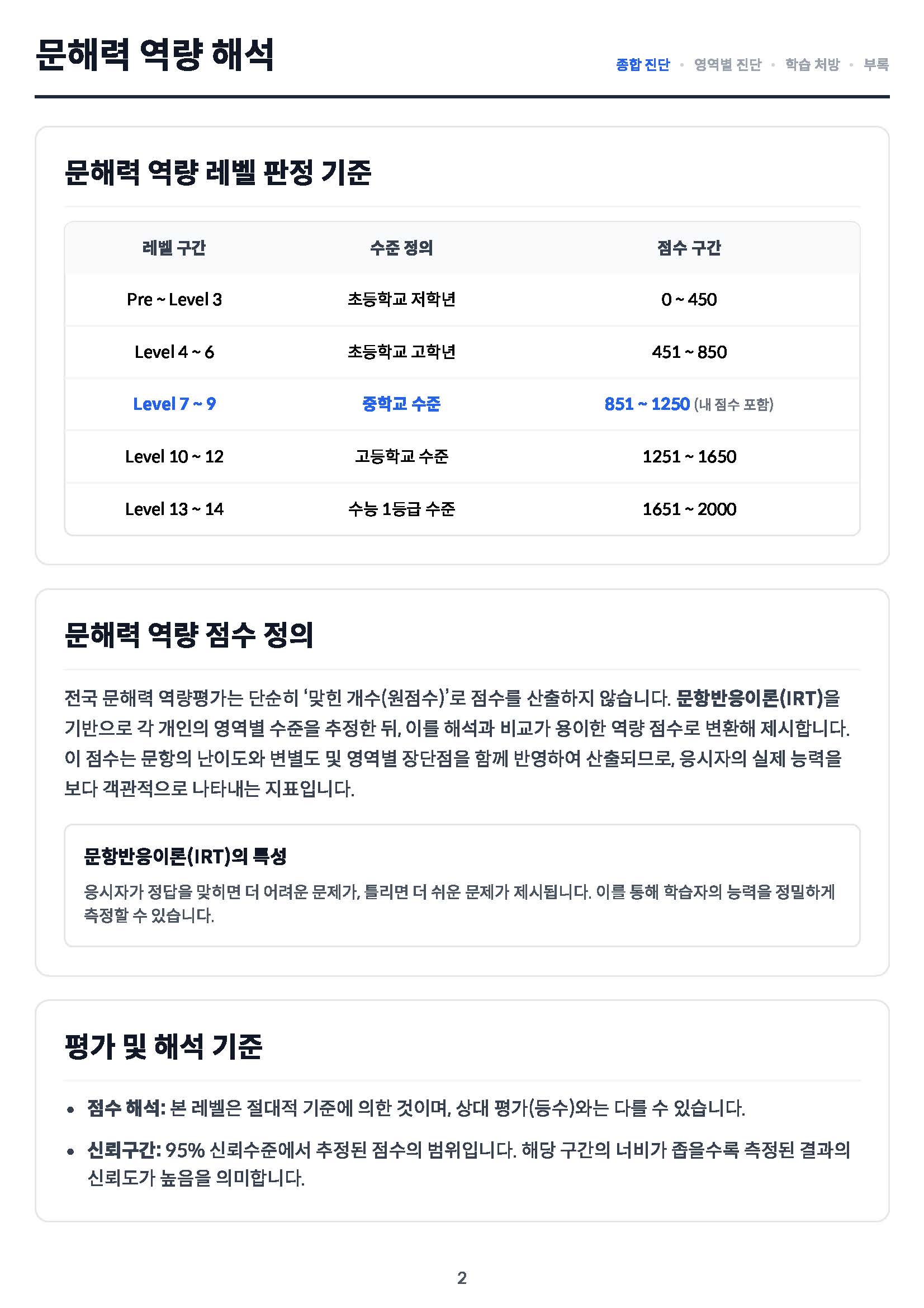 이를 통해 자신의 문해력 위치를 정확히 파악할 수 있습니다.