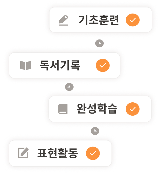 어휘 복습, 고사성어·속담·관용어 암기, 주제별 글쓰기 등으로 사고력을 확장합니다.